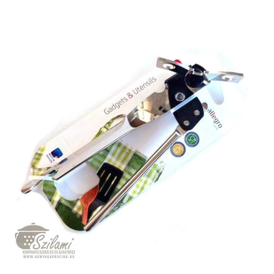 Egyszerű használatú tekerős, fém karos konzervnyitó, kicsi fogaskerékkel