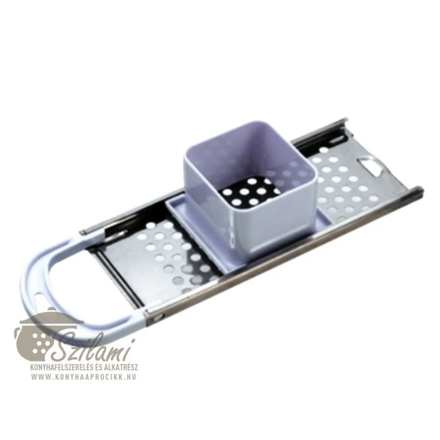 Nokedli szaggató rozsdamentes kis lyukú tologatós műanyag tartályos